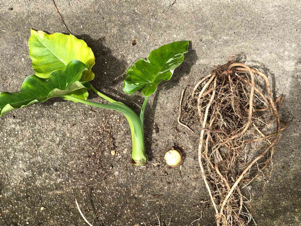 斑入りクワズイモ を解体してみました。真夏だけど子株ちゃんとできるかな? できれば春にやりたかったけど試しに実験してみます。