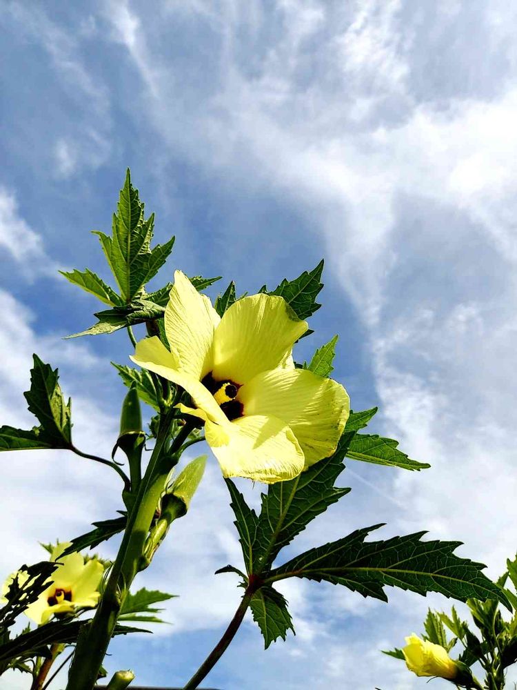 オクラの花は今家で一番空に近いお花です✌️