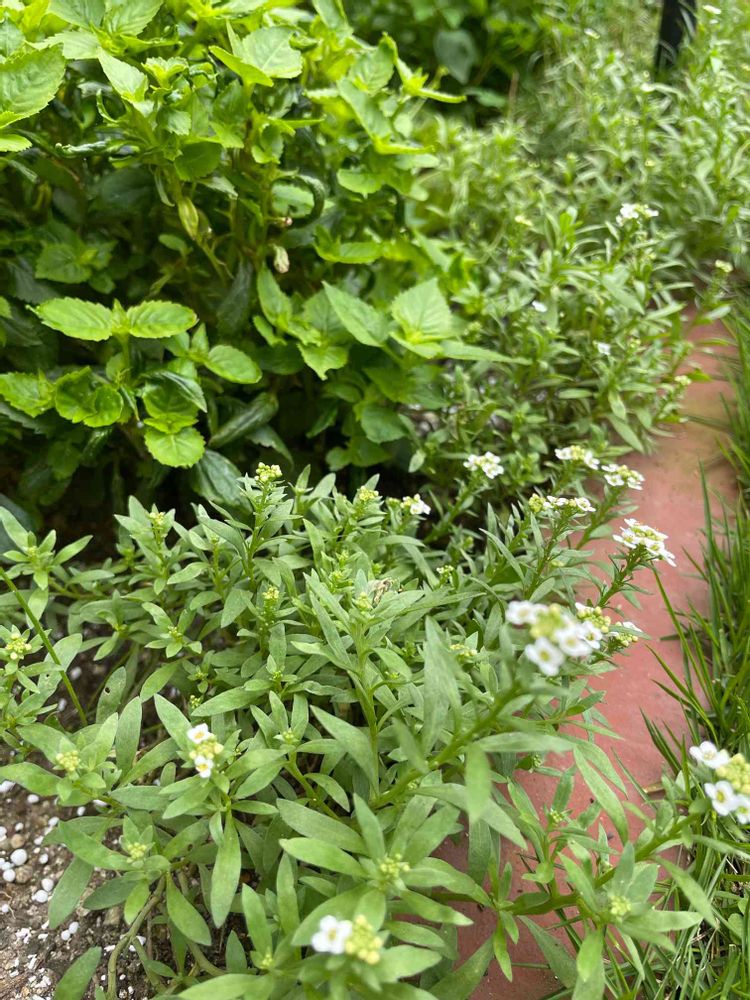 春に地植えし、真夏はひっそりと小さくなって枯れる手前だったけど、長雨にはは強かったアリッサム‼︎気づいたら葉っぱがモリモリして今見たら白い小さなお花が咲いてました✨まだ暫く暑い日が続くけど夏越し出来たら嬉しいな☺️