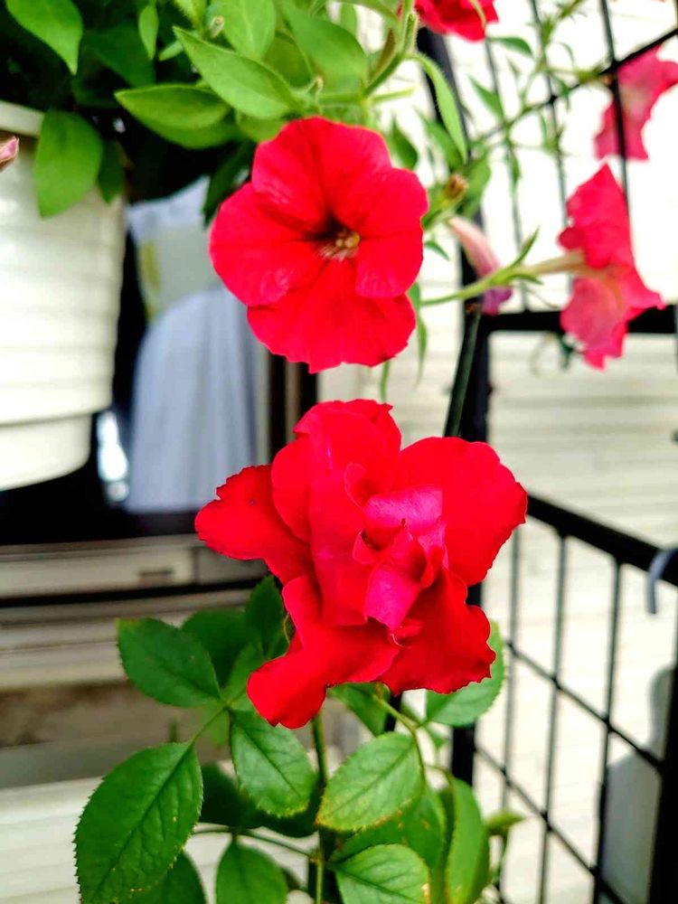 バルコニー/ベランダ,バラ,赤い花の投稿画像
