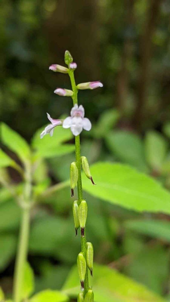 はっきりとは分かりませんが、上唇が2裂のようなので「ナガバハエドクソウ」かな?と思います。