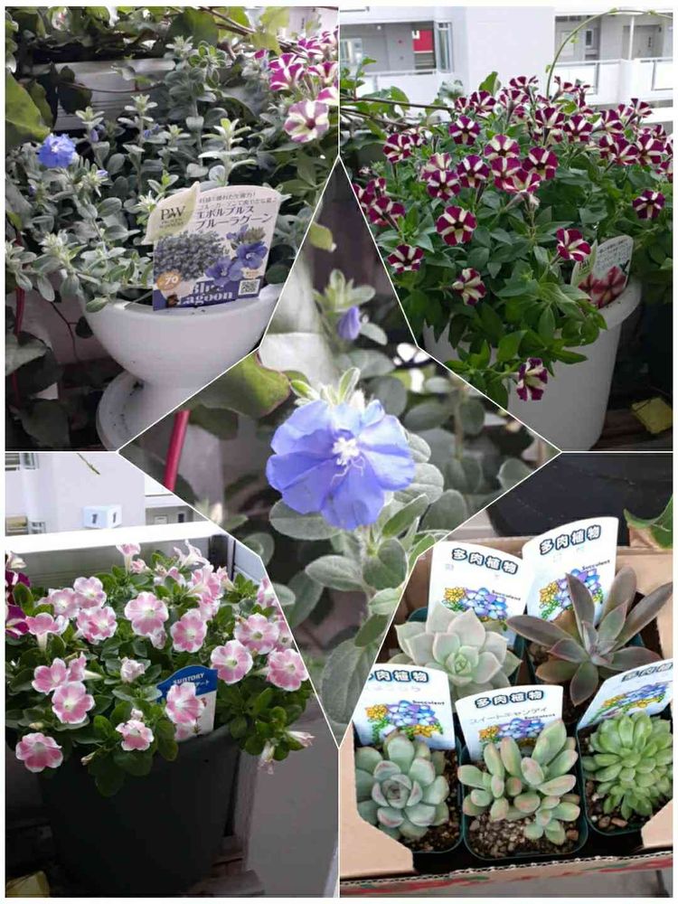 バルコニー/ベランダ,多肉いろいろ,サフィニアアート・ももいろハートの投稿画像