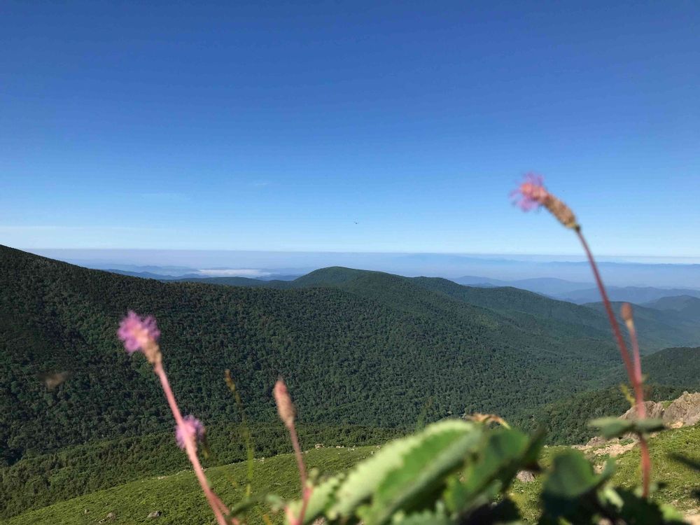 花と山と地平線に青空〜いいですね🎵 狭い庭でチマチマ寄せ植え作ってる 私にはパラダイスに見えます✨✨