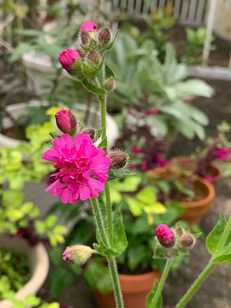 夏前に切り詰めたシレネファイヤーフライ💕真ん中から芽が立ち上がりつぼみをつけてきました。だんだん秋、また花が返り咲く季節になり楽しみです🌿
