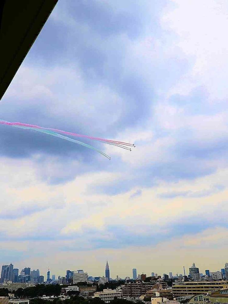 東京パラリンピックの開会式に合わせて飛行するブルーインパルスです。