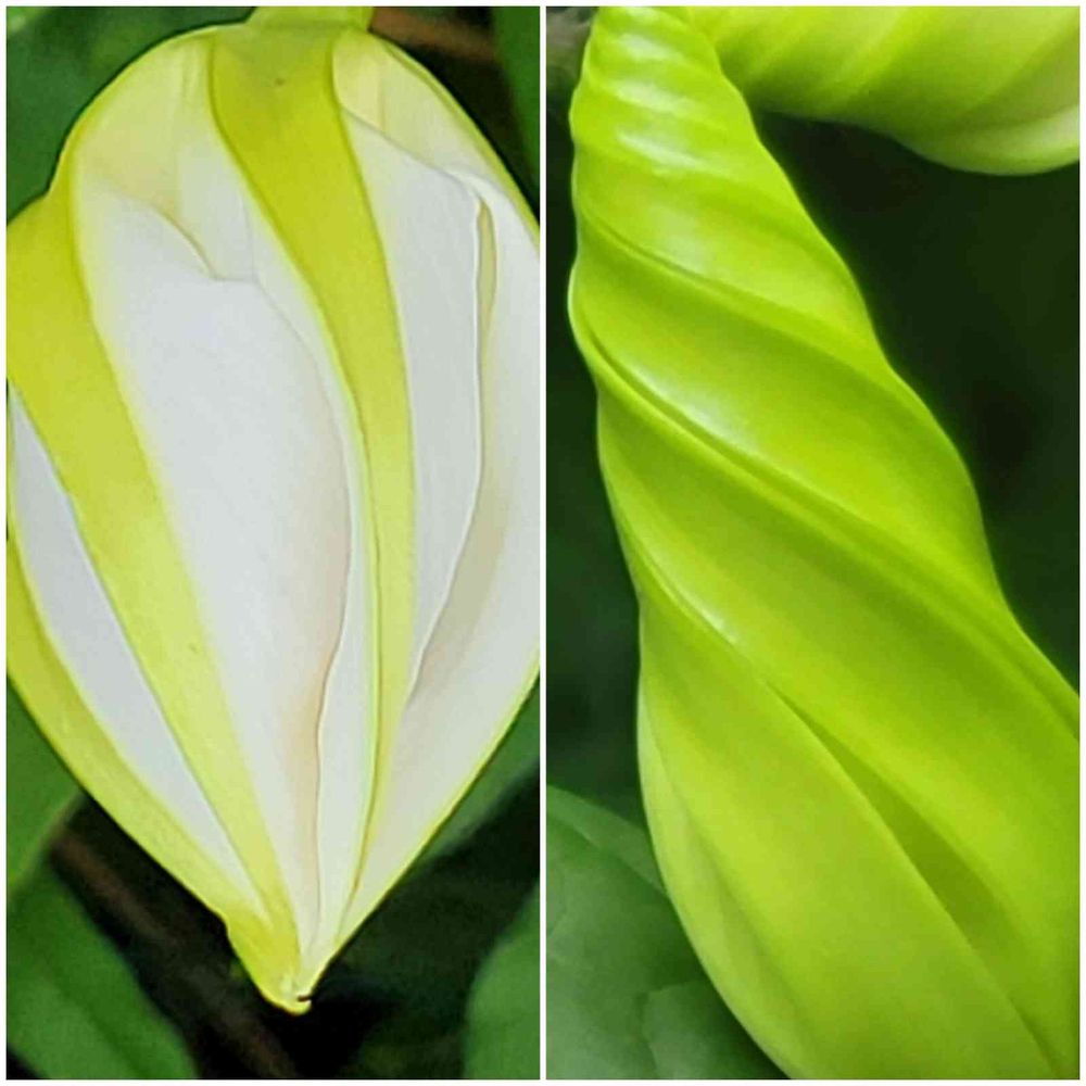 チョウセンアサガオの蕾他のフォロワーさんの見たらこんなクルクルなってなくて、まっすぐ細長かった❗