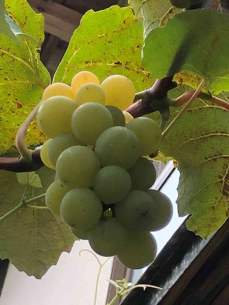 以前に投稿した葡萄が実って収穫できそうなので昨日、少しだけ収穫しました。甘みもあって美味しい葡萄になってました。主人が丁寧に手入れしてくれていたので、残りは主人と収穫祭します😊
