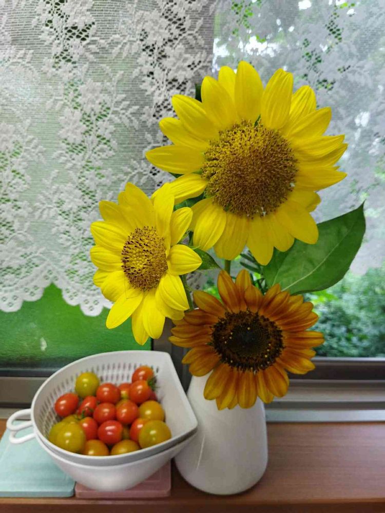 昨日また、脇芽のヒマワリを花瓶に挿しました。