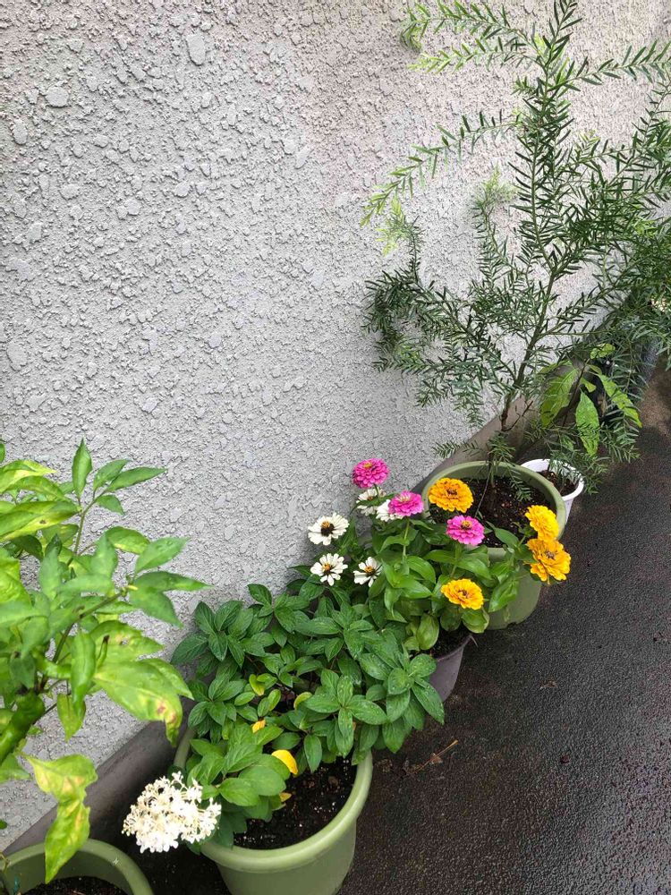 壁際にも百日草🌸🌿🤗紫陽花とミモザ,アボガドも!