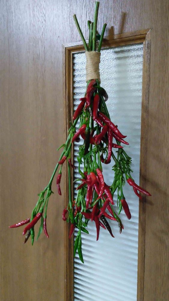 収穫には🌶️少し早かったです、このまま飾りながら乾燥させて