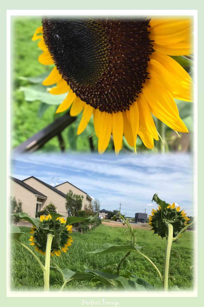保育園前の向日葵🌻紫には、1本に多数の花が有りました 何故