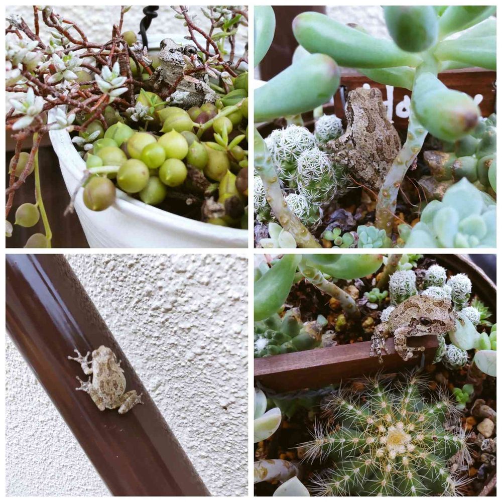 最近は、軒下にぶら下げてるリメ缶3つの、どれかに入ってるよ~🐸🏠( *^艸^)💕
