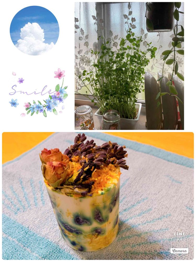 バタフライピーというブルーのお花をハーブティーにしたのを使うと綺麗な深い青色に色付きましたよ〜!マメ科のお花らしいです♪