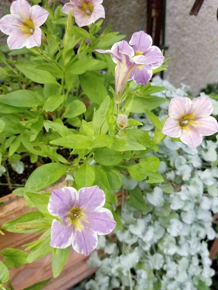 ディコンドラは調子よく、80センチくらい枝垂れています😊 手前にはスーパートレニア カタリーナ アイスブルーを植えてます