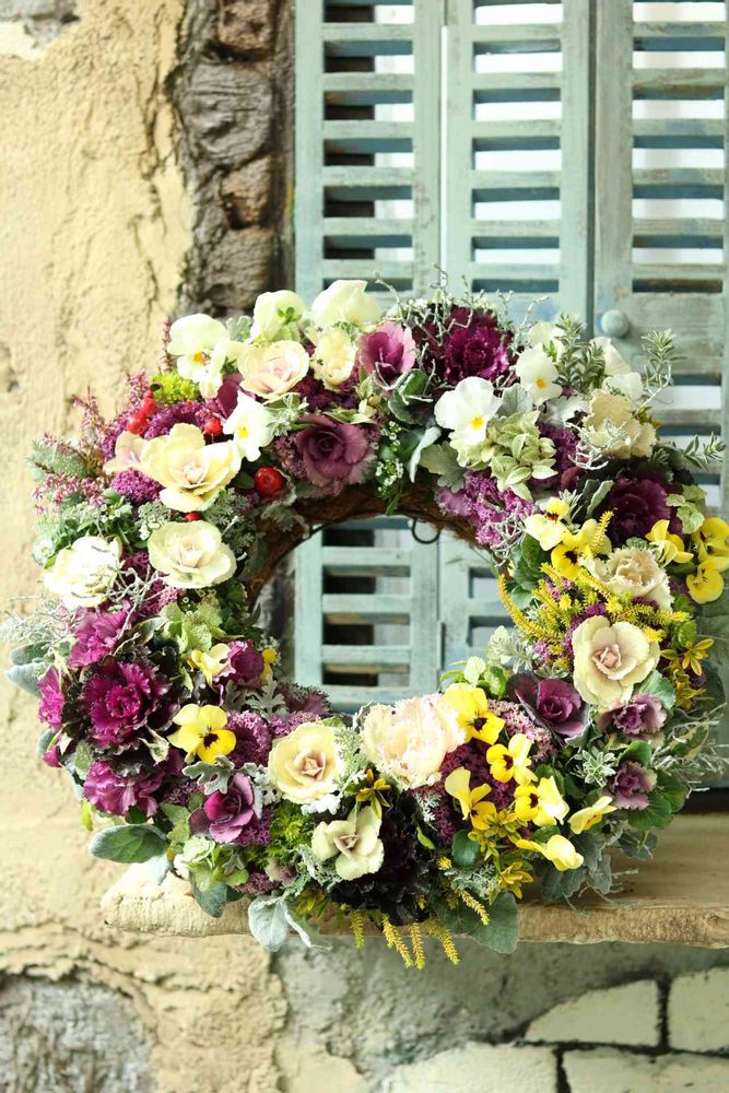 今までのは同じ花束で規則的に構成したものばかりですが今日のはぜーんぶパターンを変えた変則的なリース☆