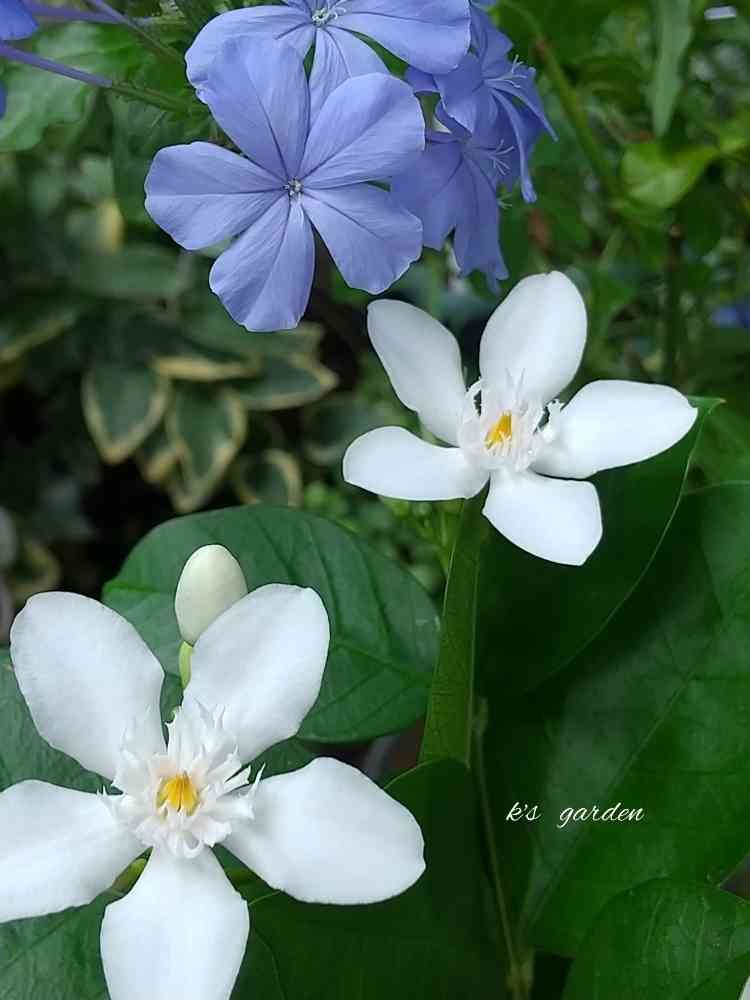 ルリマツリさんとのコントラストも素敵(⌒‐⌒)🎶