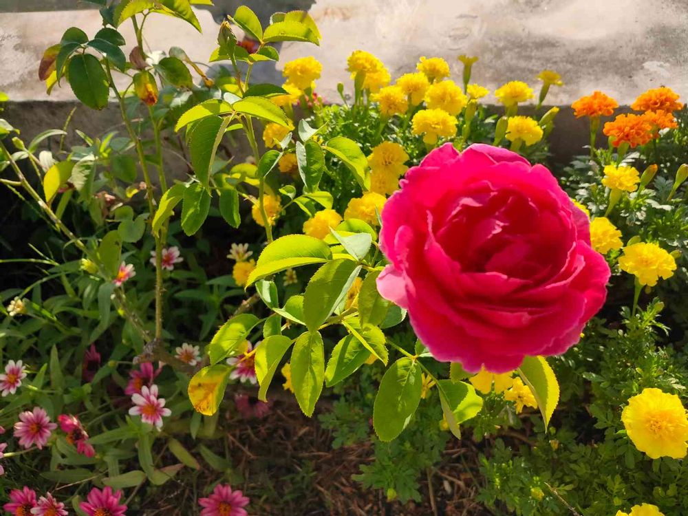 とても良い色の綺麗なツルバラですね〜❣️周りのお花も可愛い〜💕