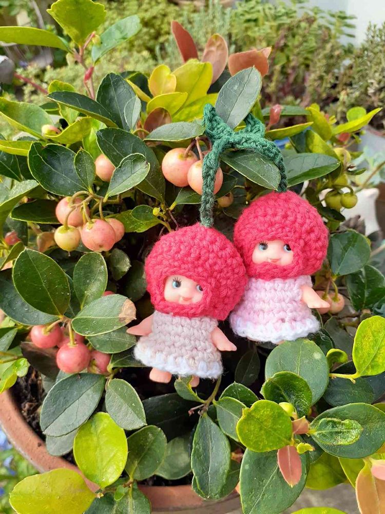 チビキュピを、双子の🍒に編んで見たよ〜🧶(*´罒`*)ニヒヒ♡