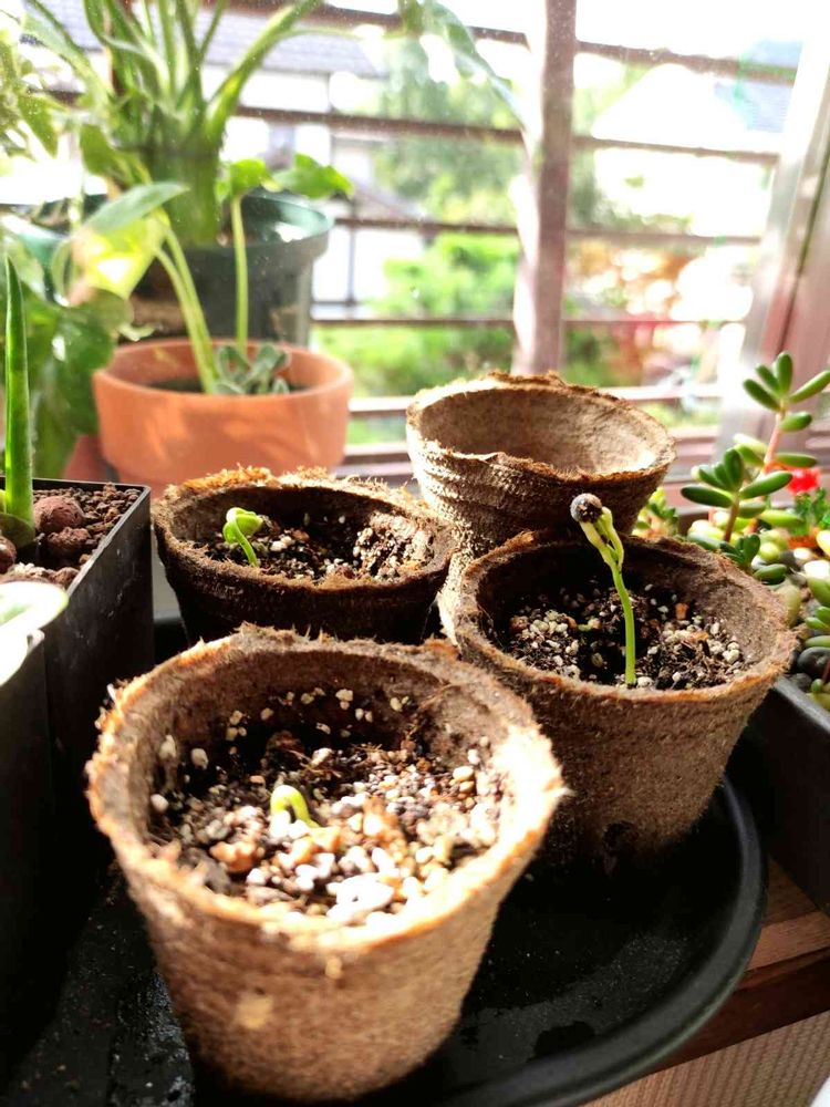 時期外れですが、余ってたフウセンカズラの種を撒いてたら、2週間強で芽が出てた 😚