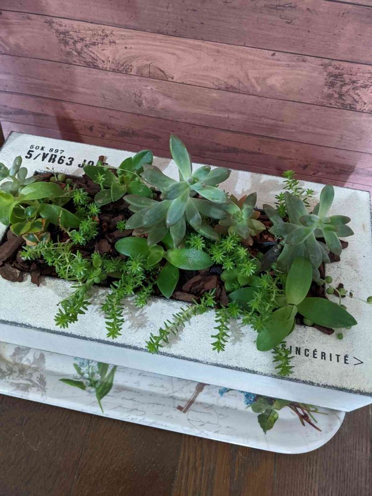 オアシス用のプラスチックケース外して、家の多肉植物寄植えしました。