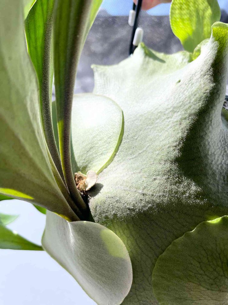 本領発揮すると扇形のフリフリ胞子葉が見られるはずなのですが、親株の写真は小さい子供の身長くらいになってたんですよね😅