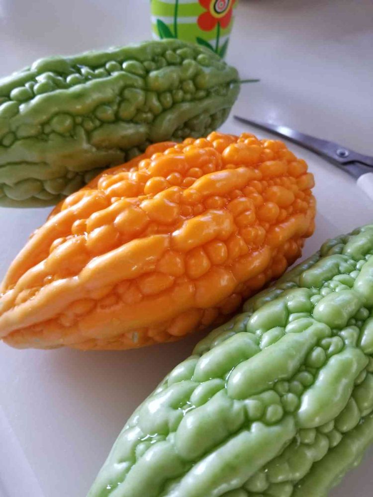 真っ赤に熟れたゴーヤの種は、甘いらしいけど、食べ過ぎたらのたうち回るぐらいの腹痛になると