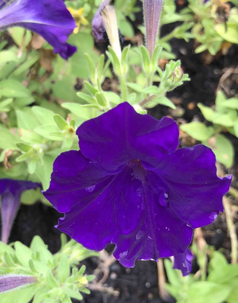 紺色のペチュニアさん、濃紺だからお目々が見えないかしら💜 (ˊo̴̶̷̤ ̫ o̴̶̷̤ˋ)