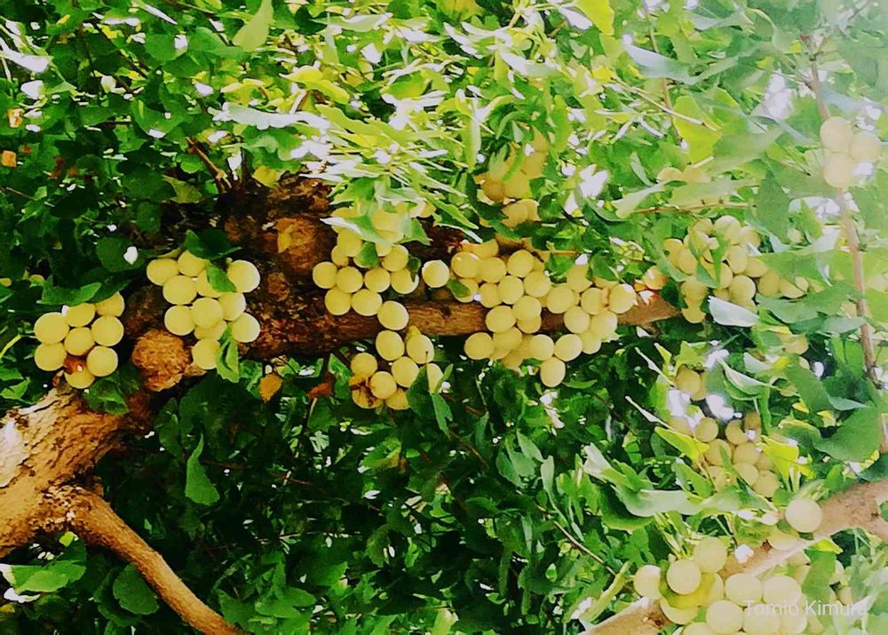 散歩道のイチョウの木に、たわわにギンナンが、、、