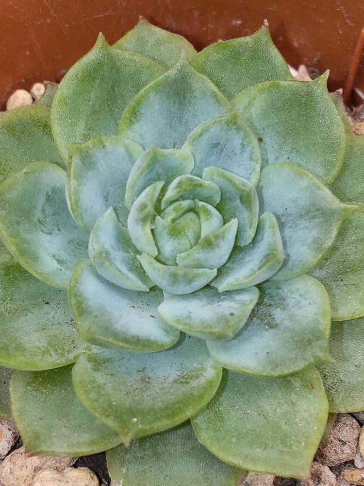 中心部をしっかりと閉じて 夏越し中の エケベリア・ライムアンドチリさん😻💚🤍