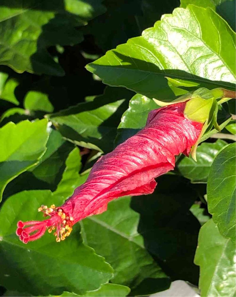 そう言われてみれば、普通なら蕾ではシベは見えないですよね😢 もしかして、ハイビスカスは一日花だから、蕾ではなく花を閉じたところなんでしょうかねぇ⁉️