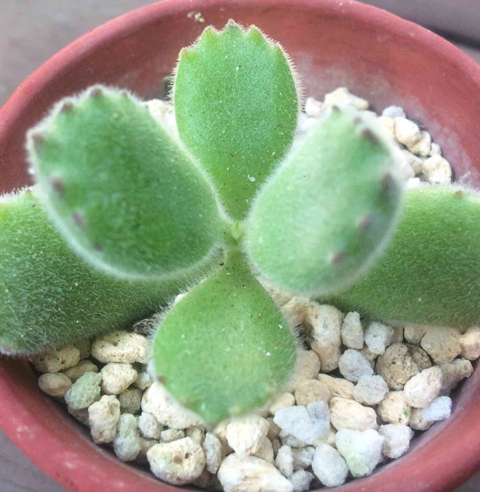 挿し木して7ヵ月 全く変化の無かった熊童子ちゃん、やっと中央にちっちゃい葉っぱが見えた❣️