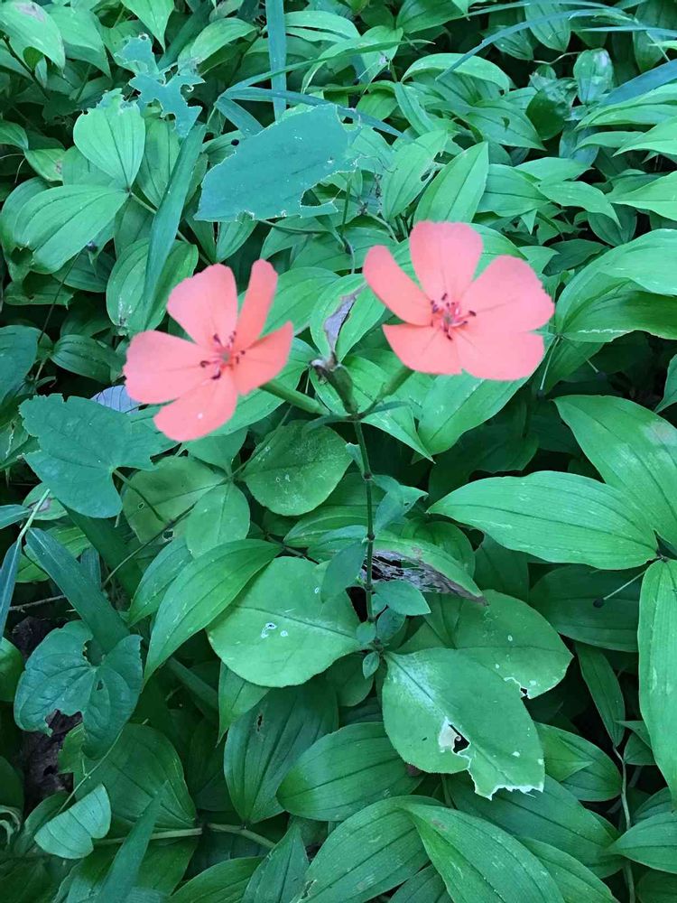多年生草本。朱赤色の大きな花で、花弁は全縁茎の設部が黒色。暖帯上部から温帯にかけて、冷涼で湿度の高い林縁・道端などに生育。日本固有種で本州、四国、九州に分布。生育地が限定され、個体数はごく少数で絶滅危惧種だそうです。