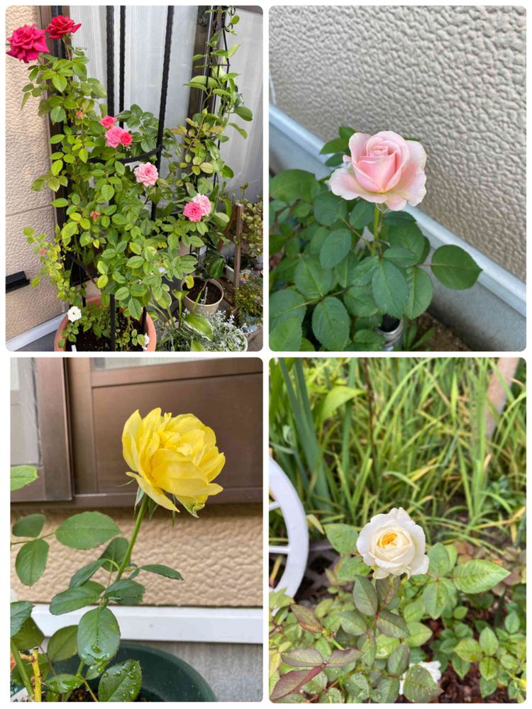 おはようございます☀ 今日も暑くなりそっ😣 今お庭に咲いている薔薇です。4本仕立てのミニ薔薇、今年はまだ黄色の薔薇だけ咲かない😢 ピンクは プリンセスオブインフィニティ。私はこの薔薇が一番可愛い🥰黄色はグランドゴールド。白はグリーンランド。 今年、めちゃくちゃ大きくなるピエールドゥロンサールをお迎えしました。今もう葉がワッサワッサです(笑)