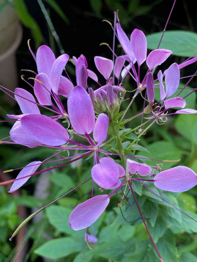 クレオメの凛々しい姿が大好きで、一昨年ゆみじんさんから種を頂いて去年咲いた種から蒔いてみました‼️