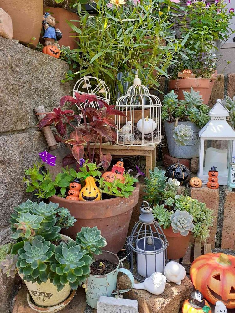 もうハロウィンの時期ですね❣️ハロウィン🎃の飾りつけ可愛いです😍😍多肉さん達も飾り方も何もかも可愛いです😍