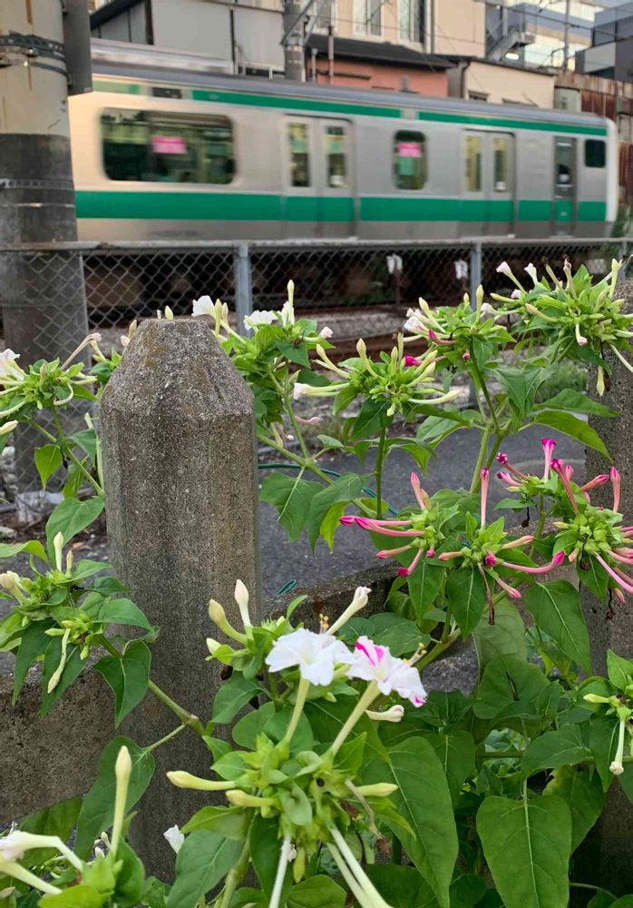 埼京線🚃と線路側に咲くオシロイバナ🌸✨🌿
