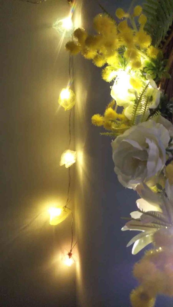 素敵😍ライトオシャレですね😄電気?電池?お花に合いますね☺️