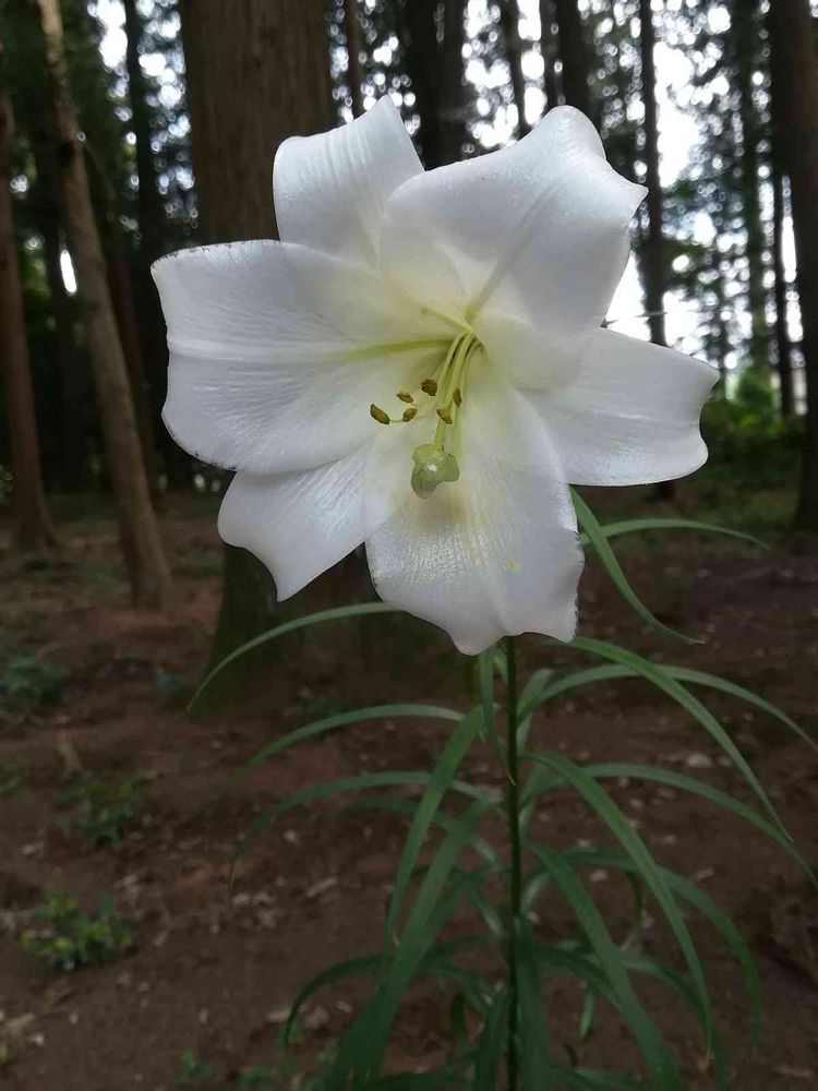 杉林の中に一輪