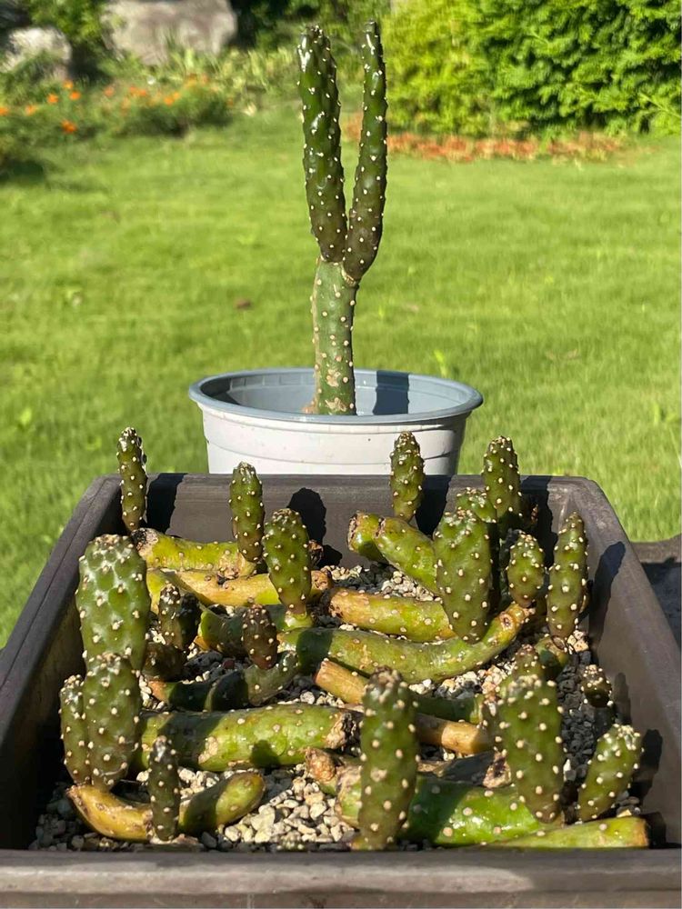 切り落とした方、さらに5cmくらいに切りわけてサボテンの土に置いておいただけ。