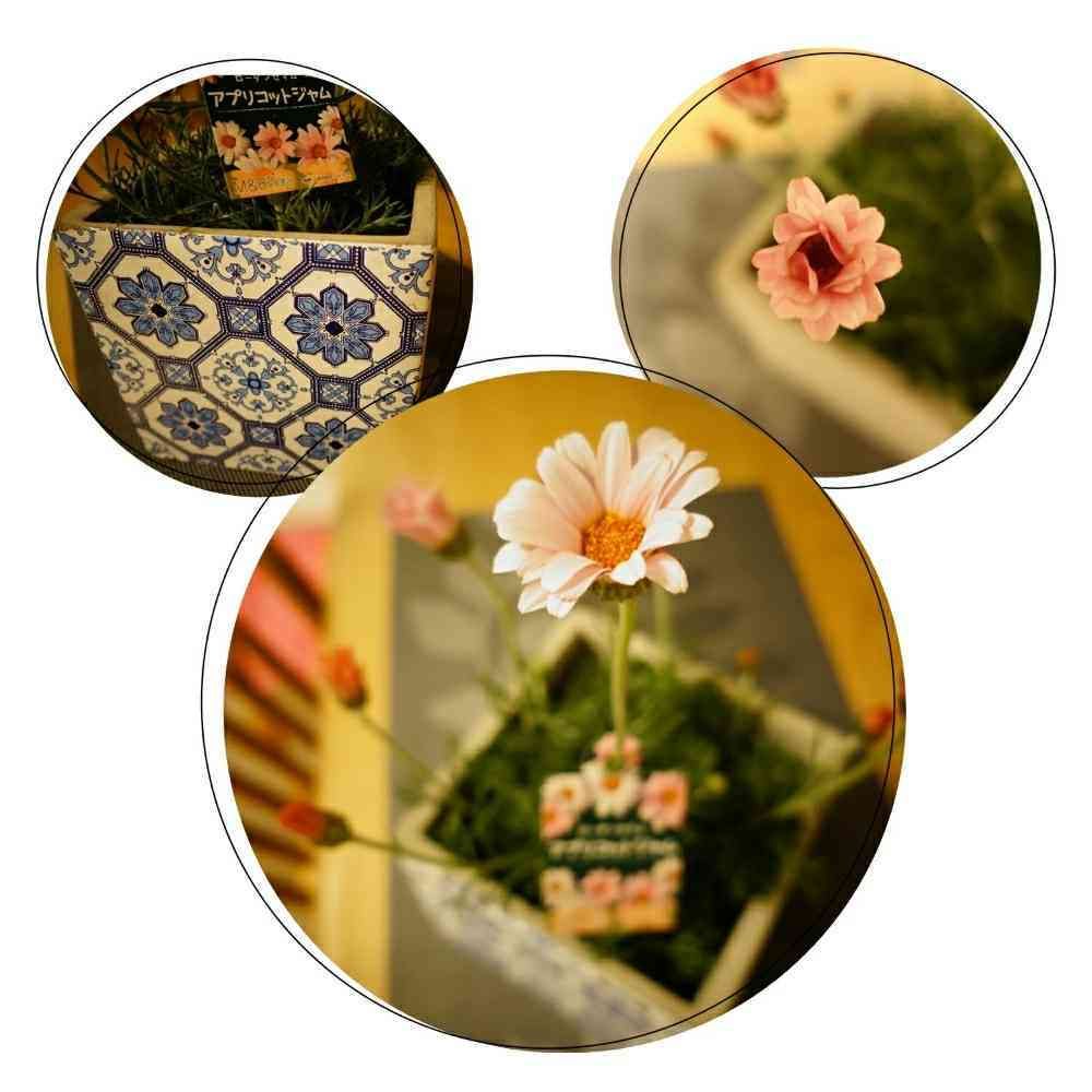 ふんわりピンクはニトリさんのタイル風セメント鉢カバーにお似合い💕かも❓