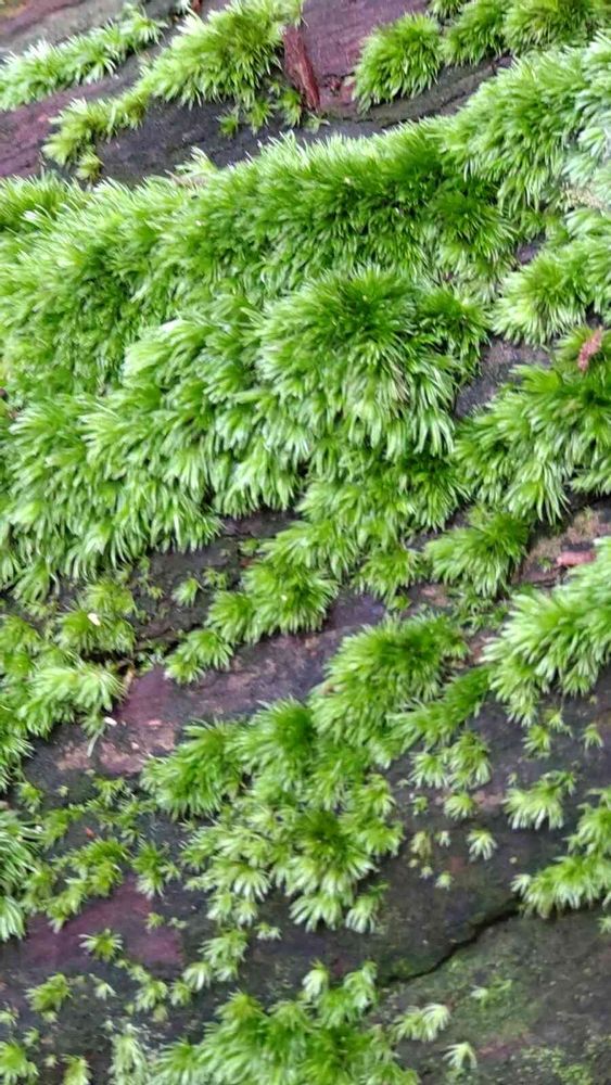あの艶のあるグレイヘアのようだったシラガゴケが、数日降り続いた雨のせいなのか、ツヤツヤの緑になってました!