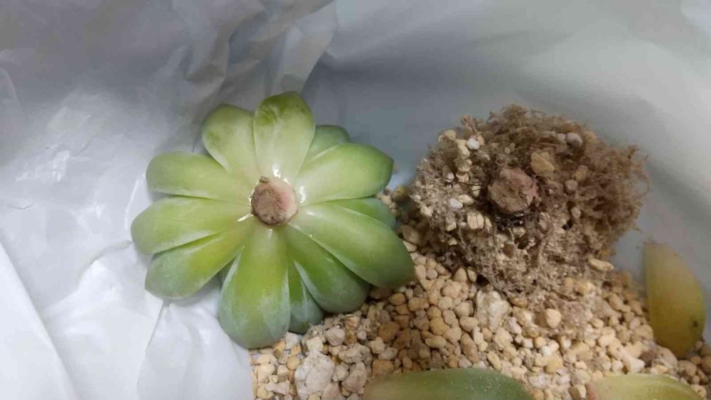 切りました。届いた時もこんな感じだったんだよなぁ。通販で多肉買うの初めてだったからクール便頼んだんだけど(東北だし)、他の子は全然平気だったのにイサドラさんだけこうなってて。