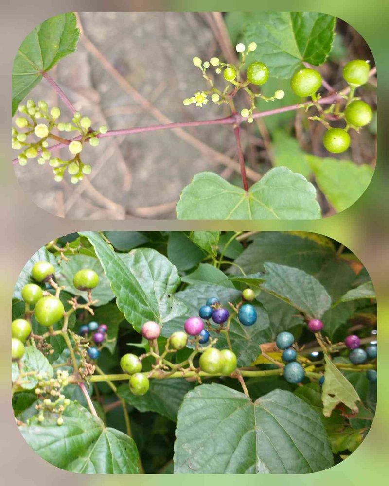 野ぶどう 上は1ヶ月近く前 まだ花が咲いてたけど🌼🌿