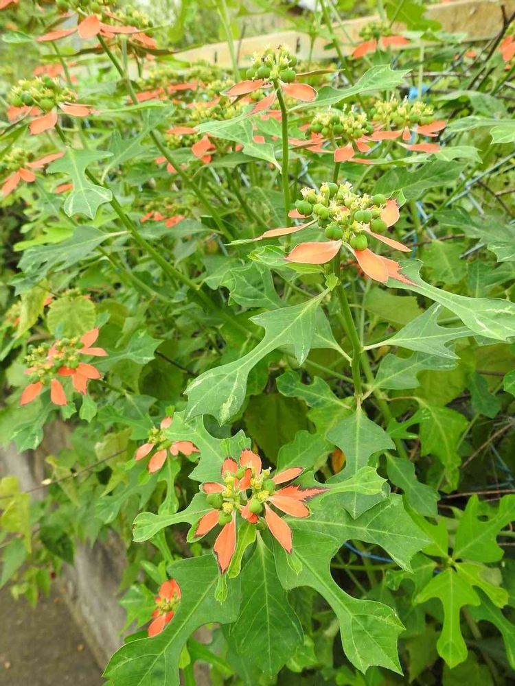 民家の庭先でモリモリと咲いていた🧡🤎ショウジョウソウの花🧡💜