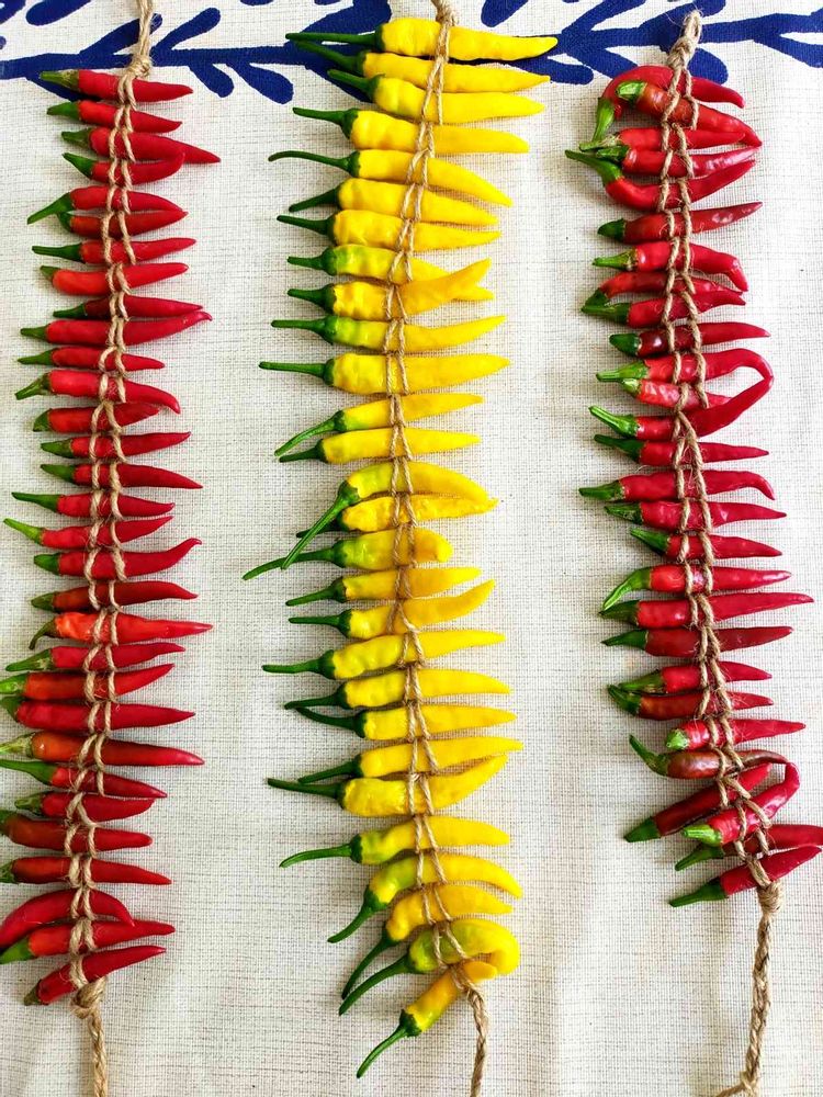 黄色の激辛黄金唐辛子が収穫できたのでまた編み込み🤩