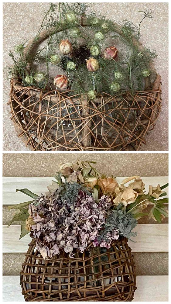 ドライのニゲラのカゴアレンジとっても可愛くて色がメルヘンチックですね〜