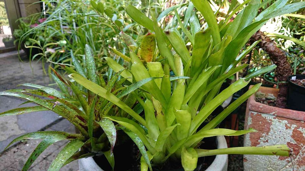栽培容易で種類も豊富なタンクブロメリアたち。もっと人気があってもいい気がするんですけどね。