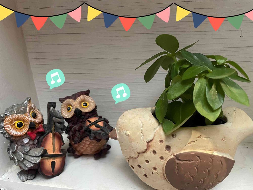 フクロウさん🦉の演奏、鳥さんも気持ちよさそうに聞いてるね🎶💗