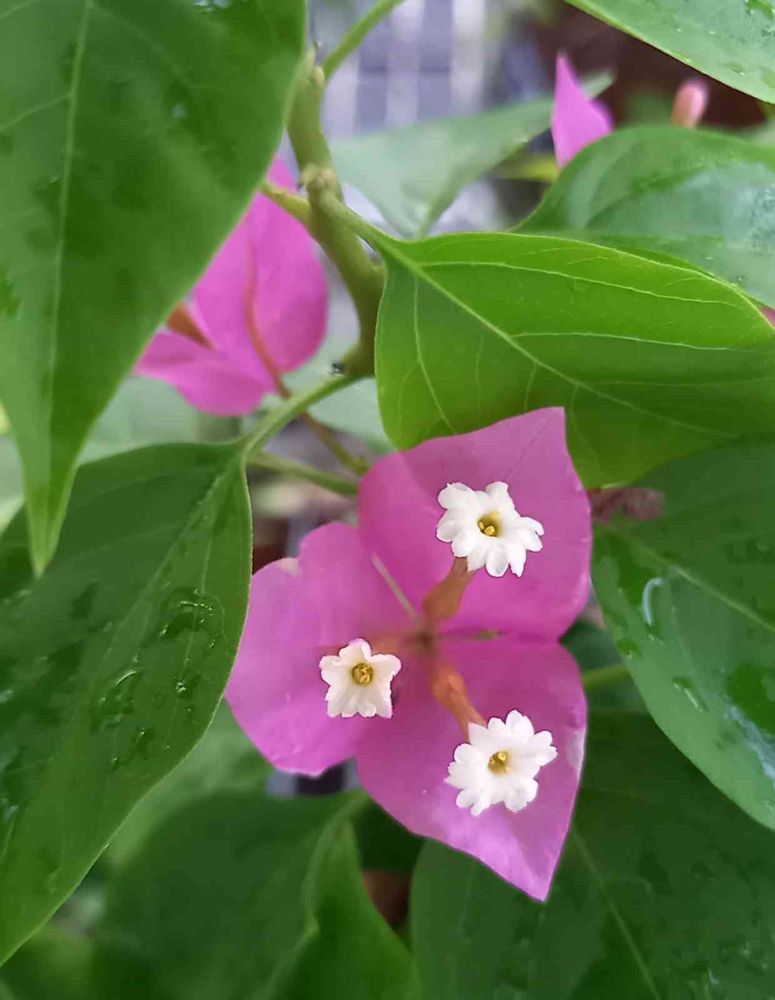 ミニブーゲンビリアに可愛い花が咲き、苞のピンクが濃くなりました💕
