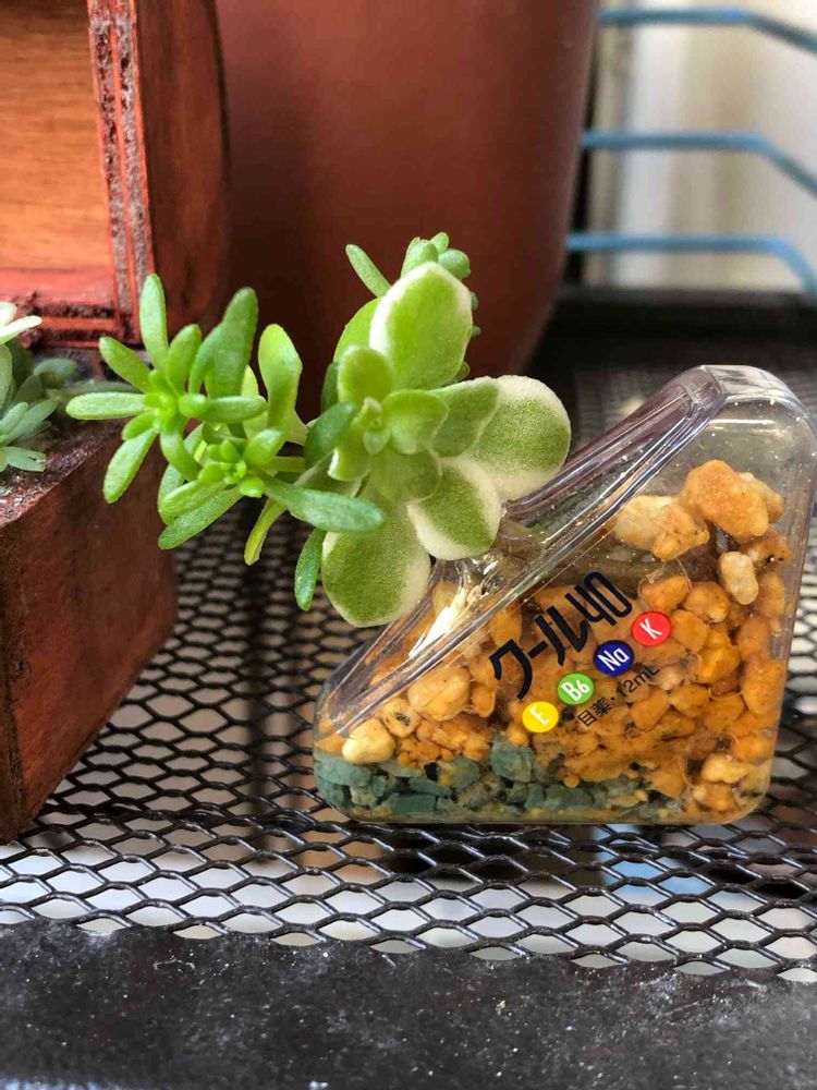 目薬の容器の寄植えを仕立て直し。強い子ばかりにしてみました。
